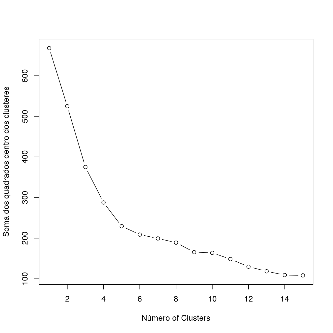 plot(1:15, wss, type="b", xlab="Número of Clusters",